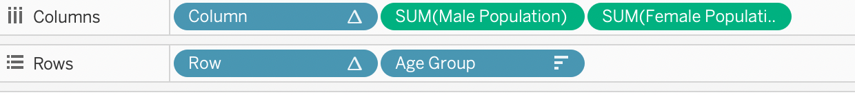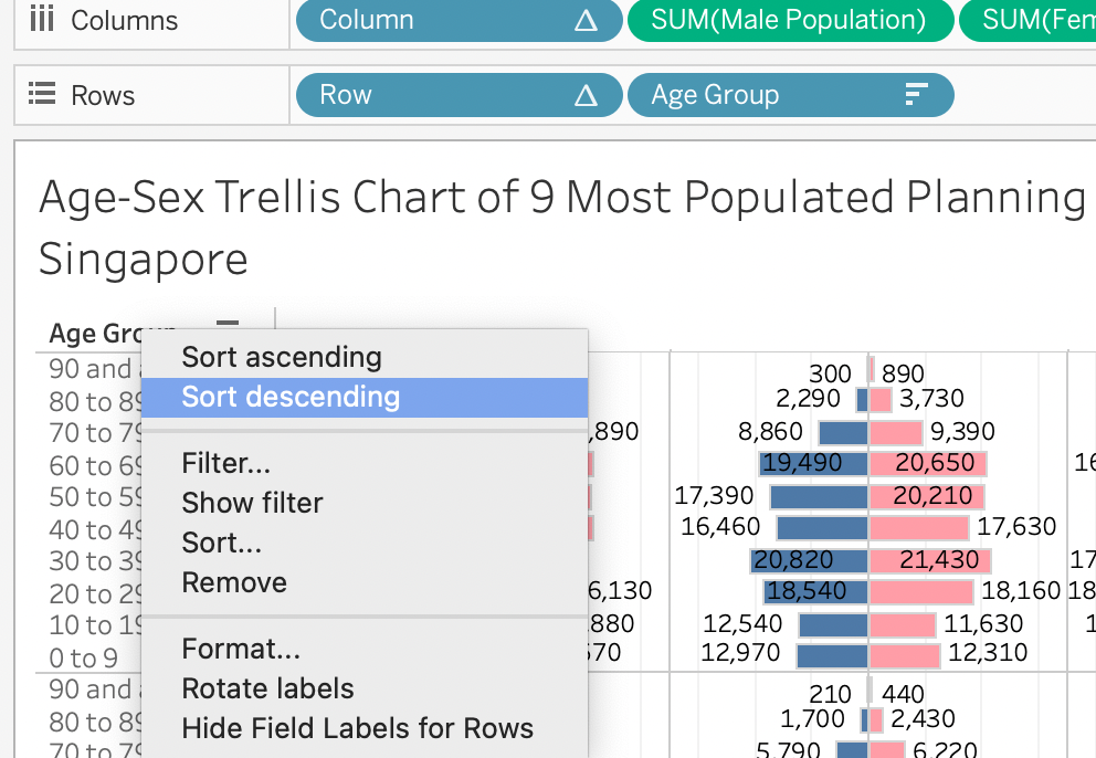 | 7 | Drag Female Pop and Male Pop to Columns field. Edit Axis of Female Pop to be reverse. | ![]() |